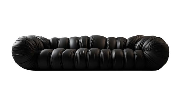 Caden Infinity sofa is crafted from high-quality black leather, ensuring both durability and a luxurious feel. The design features a cylindrical, roller-shaped seat and backrest, which are intersected by segments of puffy parts. These segments create pronounced depressions and protrusions, adding a unique texture and enhancing the sofa’s plush appearance.