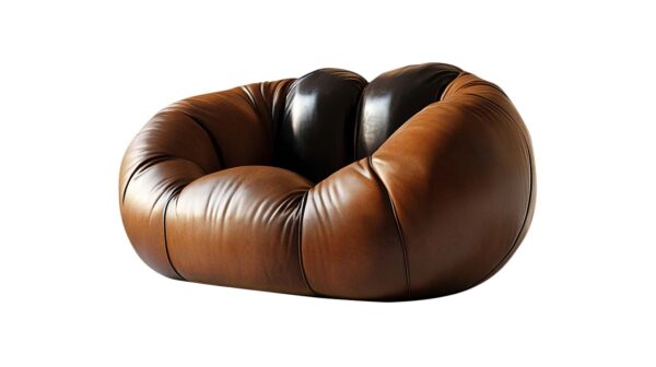 The armrests and backrest are designed to resemble a large, taut pouf. The armrests and backrest are made to look like inflated balloons, divided into several segments. This distinctive design adds texture and depth to the armchair, making it both visually appealing and comfortable.