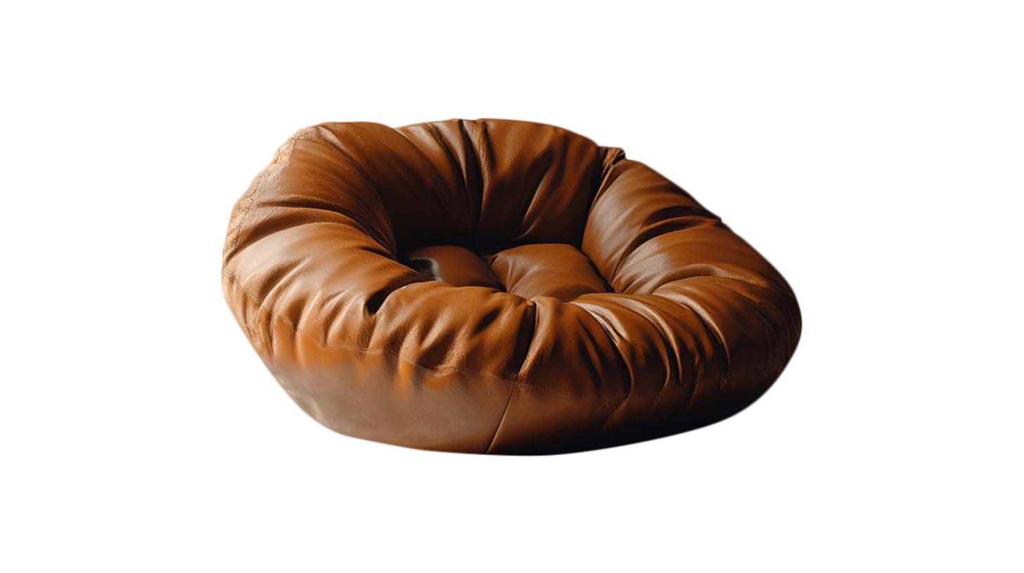 This magnificent giant armchair is a true masterpiece of comfort and design, crafted from high-quality brown leather. Its oval shape and puffy, mega appearance make it an inviting and luxurious seating option. The seat is ingeniously designed with a recess in the center, providing a cozy and enveloping space for relaxation. Within this recess, two fixed cushions are meticulously placed, enhancing the comfort and support for the sitter.